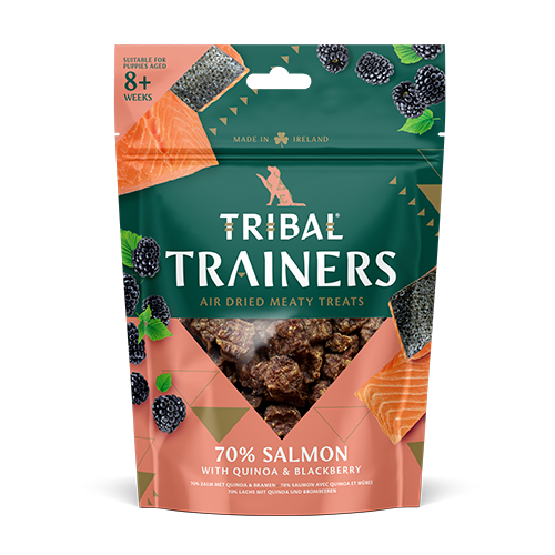 トライバル エアドライトリーツ サーモン 80g(2025/10) アスタキサンチン豊富なサーモンをベースに、スーパーフードとして知られるキヌア、クエン酸を含むブラックベリーを配合しています。  |