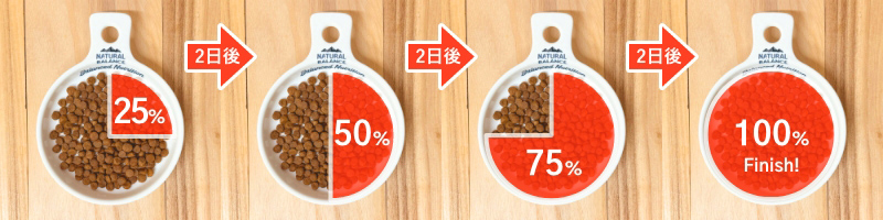 ゆっくりと時間をかけながら身体に変調がないか様子をみて、7〜10日かけて徐々に切り替えていくことをおすすめします。
