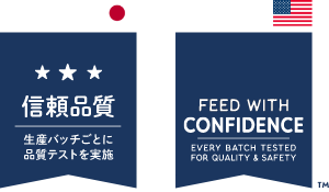 - 米国より輸送されたフードは日本の工場で全て機械によって、日本用規格にあわせて計量され、日本用パッケージにリパックされます。 米国での製造時には生産バッチごとに品質テストが実施されますが、輸送時やリパックする際の規格外品や異物混入がおこらないよう、日本でも独自の検査を実施しています。