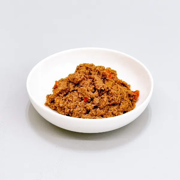 - 鶏肉、チキンスープ、白身魚、チキンレバー、玄米、チキンハツ、亜麻仁粉、乾燥酵母、乾燥ビートパルプ、人参、クランベリー、サーモンオイル、フラクトオリゴ糖、増粘安定剤(寒天)、ビタミン類、ミネラル類、アミノ酸類(タウリン)