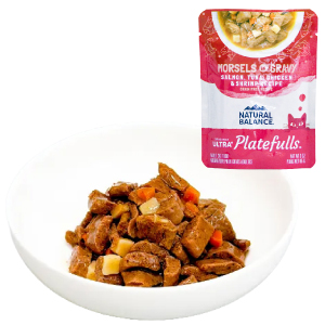 グレービーソースに浸した柔らかい一口サイズのフードは、猫ちゃんの食事に豊かな味わいと栄養をもたらします。サーモンやマグロなどの風味豊かな魚介類はオメガ脂肪酸を豊富に含み、エビと鶏肉は健康な筋肉をサポートする優れたたんぱく質源です。ボリュームのある魚のブイヨンと鶏レバーが、さらに風味とたんぱく質をプラス。ニンジンやジャガイモなどの野菜は食物繊維を豊富に含み、健康的な消化をサポートします。心臓の健康をサポートするタウリンと、健康な皮膚と美しい毛並みをサポートするオメガ3&6脂肪酸も配合しています。成猫には栄養バランスの取れた総合栄養食として、またはドライフードのトッピングとしてお召し上がりください。小麦、大豆、穀物は使用していません。