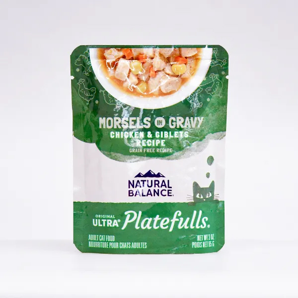 グレービーソースに浸した柔らかい一口サイズのフードは、猫ちゃんの食事に豊かな味わいと栄養をもたらします。鶏肉は健康な筋肉をサポートする優れたたんぱく質源で、風味豊かなブイヨンとジブレッツは、たんぱく質と風味をさらに高めます。エンドウ豆やニンジンなどの野菜は食物繊維を豊富に含み、健康的な消化をサポートします。心臓の健康をサポートするタウリンと、健康な皮膚と美しい毛並みをサポートするオメガ3&6脂肪酸も配合しています。成猫には栄養バランスの取れた総合栄養食として、またはドライフードのトッピングとしてお召し上がりください。小麦、大豆、穀物は使用していません。