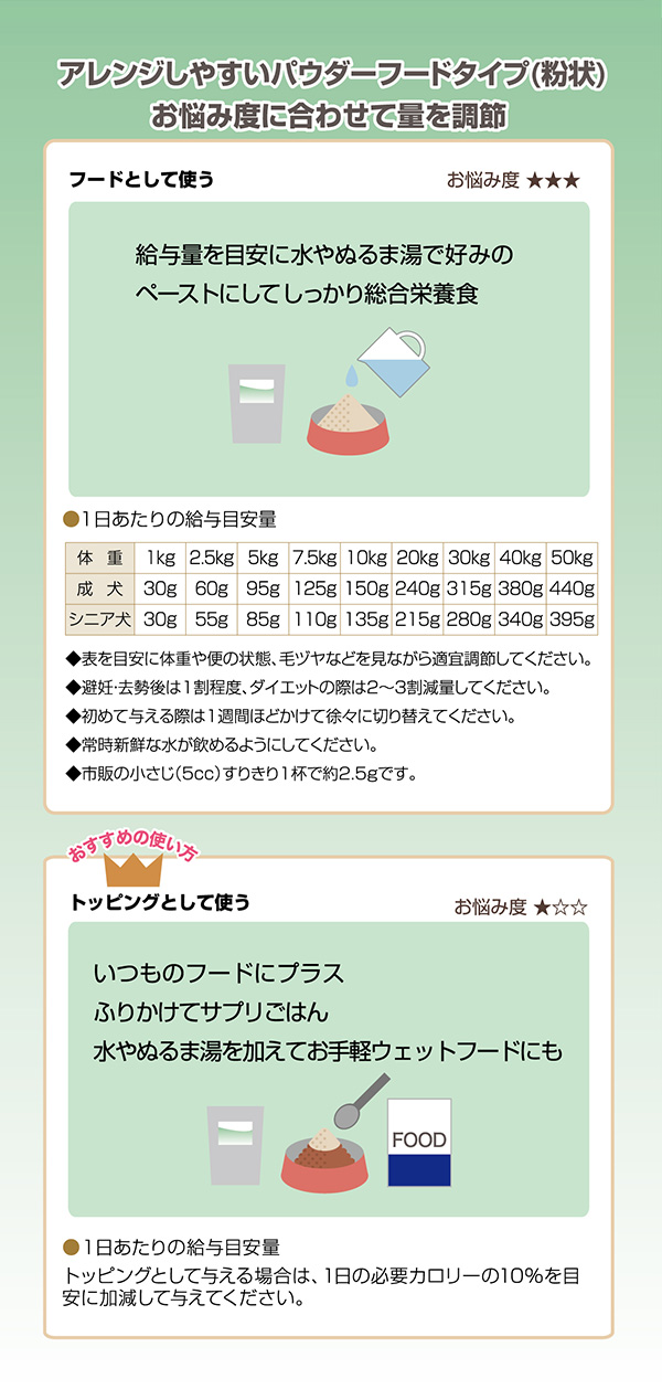 マンションの一室や、車の中などで吠え続けている、そんな子のために、心を落ち着けるパウダーフードを考えました。