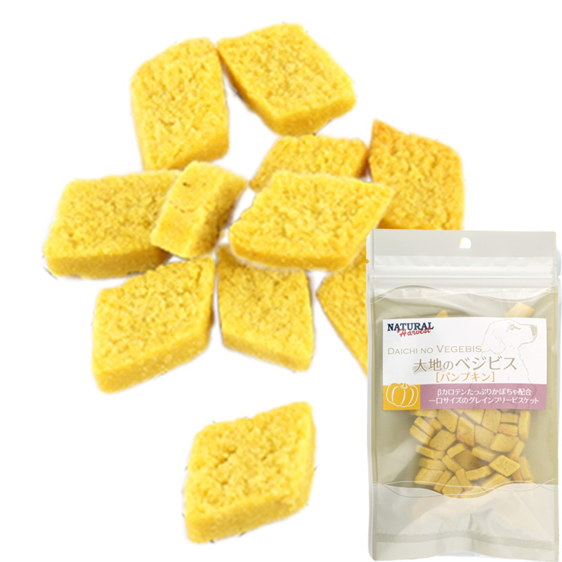 - 大地のベジビスは「パンプキン」「ブルーベリー」「キクイモ」そして、「ホッケ」「エゾ鹿」5種類でのご用意となります。 大地のチカラを練り込んだおいしいビスケット。 ナチュラルハーベストの大地のベジビスをぜひお試しください。