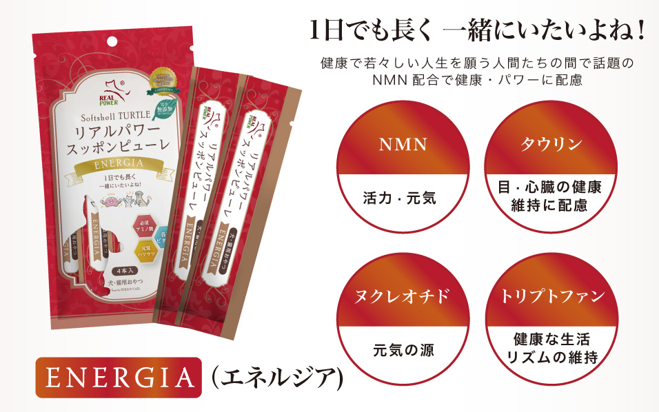 このスッポンピューレには、必須アミノ酸、アミノ酸(タウリン、ロイシン、イソロイシン、シスチン、プロリン)、ビタミン(A、B2、C、E、D)、脂肪酸などのスッポン肉に含まれる優れた栄養バランスにより本来の抵抗力や健康維持に役立ちます。そして、低コレステロール・低脂肪で、愛犬に負担をかけずに楽しく美味しく食べられます!