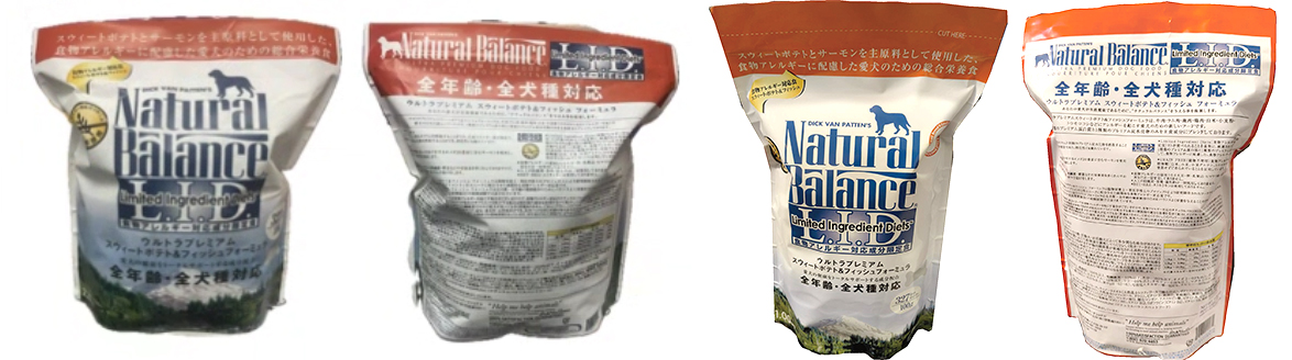 - ナチュラルバランス スウィートポテト&フィッシュ5ポンド、 スウィートポテト&フィッシュ小粒5ポンドの臨時パッケージへの変更のお知らせ